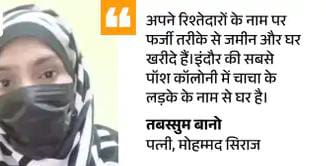 उस समय पति की पोस्टिंग इंदौर में थी। मेरे बेटे की इंदौर में पढ़ाई चल रही थी। कुछ दिनों बाद मैंने बेटे को वापस पति के पास भेज दिया। तबस्सुम कहती है कि मेरे पति ने पद का दुरुपयोग कर लाखों-करोड़ों की बेनामी संपत्ति भी बनाई है। छिंदवाड़ा, इंदौर और जबलपुर में प्लाट और मकान अपने रिश्तेदारों के नाम से खरीदे हैं।