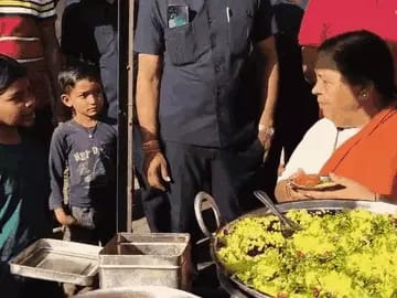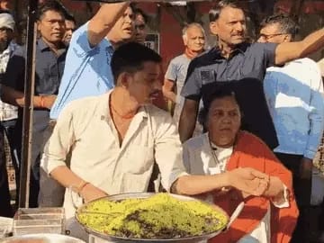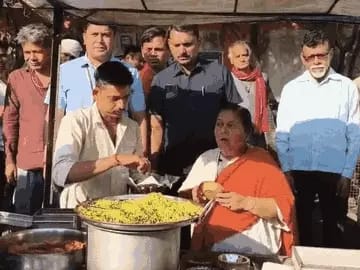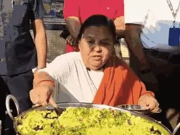 उमाभारती को पोहा बेचता देख ठेले पर लोगों की भीड़ लग गई।