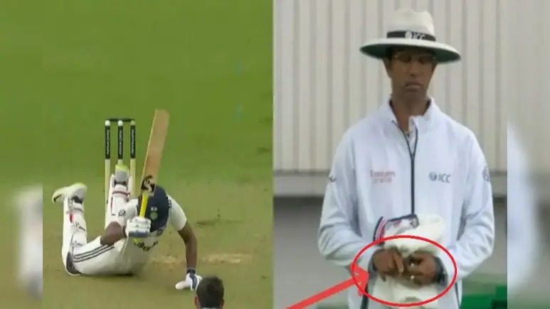 Kumar Dharmasena Actions Under Scanner: भारत-इंग्लैंड टेस्ट मैच के पहले दिन (IND vs ENG, 5th Test Day 1) अंपायर कुमार धर्मसेना (Umpire Kumar Dharmasena viral act) को लेकर बवाल मच गया है. दरअसल, पांचवें टेस्ट मैच के पहले दिन एक ऐसी घटना घटी जिसने बवाल मचा दिया. हुआ ये कि भारत की पारी के 13वें ओवर की दूसरी गेंद इंग्लैंड के तेज गेंदबाज जोश टंग ने साई सुदर्शन (Sai Sudharsan vs Josh Tongue) को तेज य़ॉर्कर फेंकी, गेंद उनसे पैड पर जा लगी. जिसके बाद गेंदबाज ने LBW की अपील की, कुमार धर्मसेना ने अपील ठुकरा दी लेकिन इसके साथ ही उन्होंने हाथ के इशारे से दिखाया कि गेंद पहले बल्ले से लगी थी.