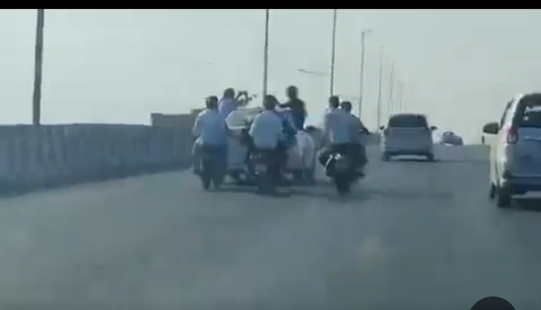 उत्तर प्रदेश के अमरोहा में एक हैरान कर देने वाली घटना घटी है। यहां युवा लड़के मिलकर हाईवे पर ना सिर्फ हुड़दंग मचा रहे थे बल्कि वो कार और बाइक स्पीड में चलाकर अपनी और दूसरों की जान भी खतरे में डाल रहे थे। यह पूरी घटना कैमरे में कैद हो गई और सोशल मीडिया पर अब ये काफी तेजी से वायरल हो रही है।