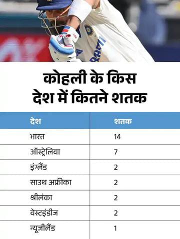 कोहली ने टेस्ट में 30 शतक बनाए हैं। इसमें से सबसे ज्यादा 14 शतक भारत में बनाए हैं। न्यूजीलैंड में उन्होंने केवल एक शतक जड़ा है।