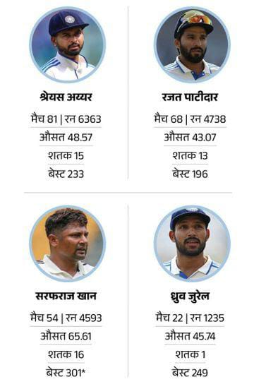 - श्रेयस अय्यर: भारत से तीनों फॉर्मेट में डेब्यू कर चुके श्रेयस टेस्ट में कोहली को रिप्लेस करने के नंबर-1 दावेदार हैं। वे वनडे टीम में अपनी जगह पक्की कर चुके हैं, लेकिन टेस्ट में खराब प्रदर्शन के कारण फिलहाल बाहर हैं। वे 14 टेस्ट में 1 शतक और 5 फिफ्टी लगा चुके हैं। श्रेयस के नाम 15 फर्स्ट क्लास शतक भी हैं।