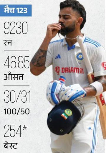 कोहली के टेस्ट में 9230 रन, 30 शतक