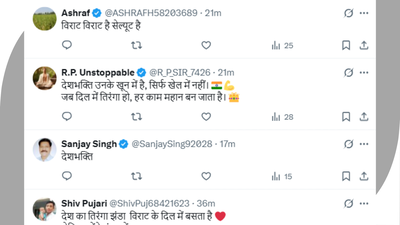 कोहली का देश के प्रति प्रेम और सम्मान देखने के बाद फैंस भी कमेंट सेक्शन में अपनी हीरो की जमकर तारीफ कर रहे हैं। एक यूजर ने लिखा- देश का तिरंगा झंडा विराट के दिल में बसता है। दूसरे यूजर ने कहा कि देशभक्ति उनके खून में है, सिर्फ खेल में नहीं। जब दिल में तिरंगा हो, हर काम महान बन जाता है। एक अन्य यूजर ने लिखा कि विराट, विराट है उन्हें सैल्यूट है!