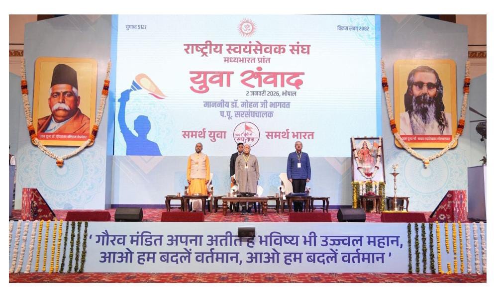 समाज की ताकत बनने में सफलता पाई है। और यह दावा करने का आत्मबल अर्जित किया है कि भारत का युवा जाग गया है, वह अपने देश को समर्थ बनाना चाहता है। राष्ट्रीय स्वयंसेवक संघ की ओर से आयोजित ‘युवा संवाद’ कार्यक्रम में मध्यभारत प्रान्त के 16 शासकीय जिलों के युवाओं को सरसंघचालक डॉ. मोहन भागवत ने भोपाल में 2 जनवरी 2025 को संबोधित किया। युवाओं से आह्वान किया कि हमें गुणों को धारण करना होगा और अहंकार एवं स्वार्थ छोड़ने होंगे।