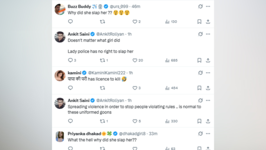 जहां कुछ यूजर्स महिला ट्रैफिक पुलिसकर्मी के हाथ उठाने को गलत बताते हुए कमेंट सेक्शन में उसके इस कदम की जमकर निंदा कर रहे हैं। वहीं दूसरी ओर लोगों का कहना है कि लड़कियों को ट्रैफिक नियमों को ध्यान में रखते हुए ही ड्राइविंग करनी चाहिए। एक यूजर ने लिखा- इससे कोई फर्क नहीं पड़ता कि लड़की ने क्या किया, लेडी पुलिस को उसे थप्पड़ मारने का कोई अधिकार नहीं है।
