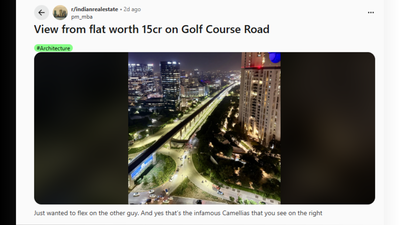नाम के यूजर ने इस पोस्ट को शेयर किया है। जिसके टाइटल ‘गोल्फ कोर्स रोड पर स्थित 15 करोड़ रुपये के फ्लैट से शानदार नजारा’ में लिखा है। वहीं पोस्ट के कैप्शन में बंदे ने लिखा है कि ‘मैं बस दूसरो दिखाना चाहता था। और हां, दाईं ओर जो दिख रहा है वो वही बदनाम कैमेलियास अपार्टमेंट हैं।’