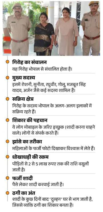 मोबाइल पर शादी के इच्छुक लोगों से संपर्क कर महिलाओं के फर्जी फोटो दिखाते थे और 2 से 5 लाख रुपए तक वसूल कर शादी करवा देते थे। शादी के 3-4 दिन बाद ही दुल्हन बनी युवती घर का सारा माल समेटकर से भाग जाती है।